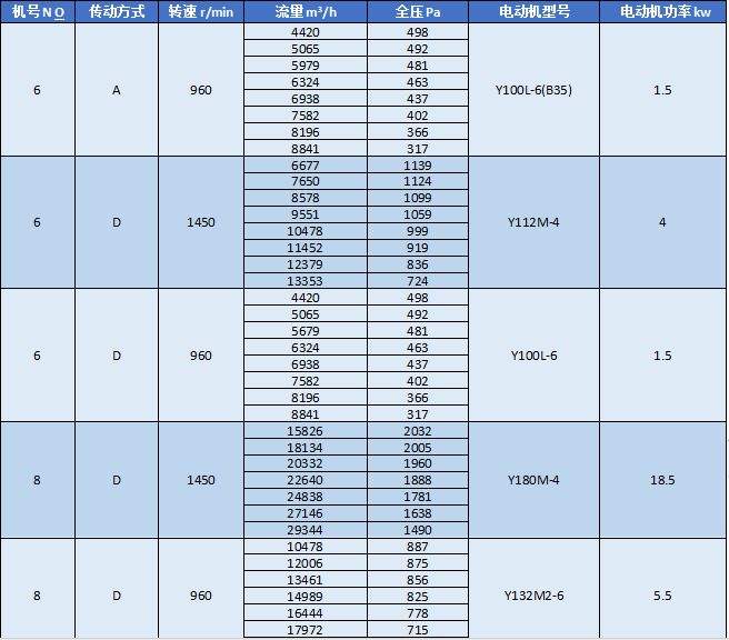 风量范围:1100~10000m3/h,压力范围:200~3200Pa。